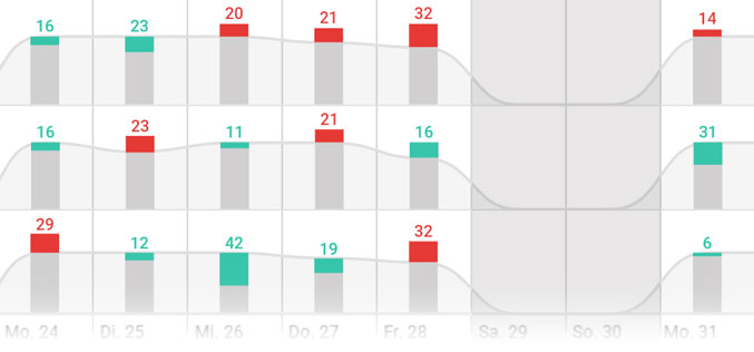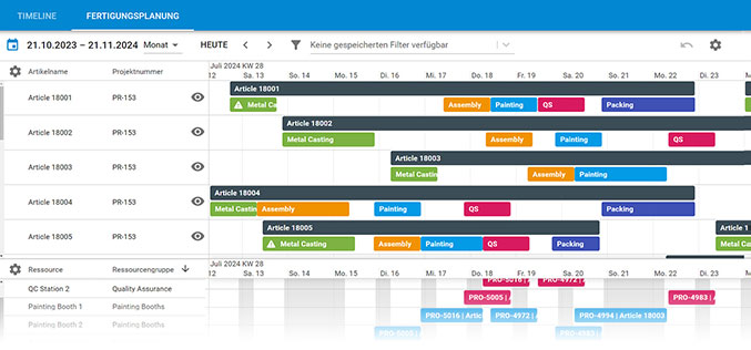 Mit dem Reporting Ressourcenverfügbarkeit haben Sie eine tagesaktuelle Anzeige der Über- oder Unterkapazitäten von Mitarbeitern und Maschinen.
