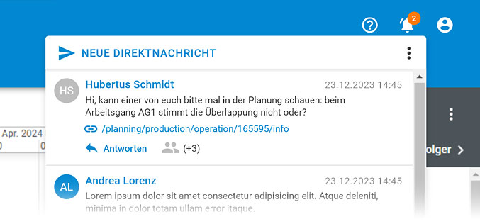 Kommunizieren Sie direkt innerhalb von planeus – mit Direktnachrichten bleiben Ihre Teams vernetzt.