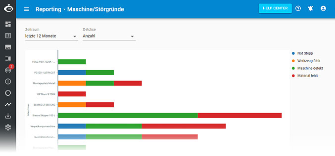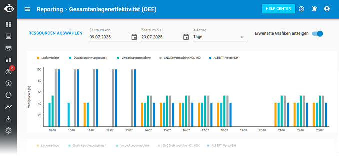 Durch unser OEE-Report ermitteln Sie die Produktivität Ihrer Maschinen auf Grundlage der Faktoren Verfügbarkeit, Effektivität und Qualität.