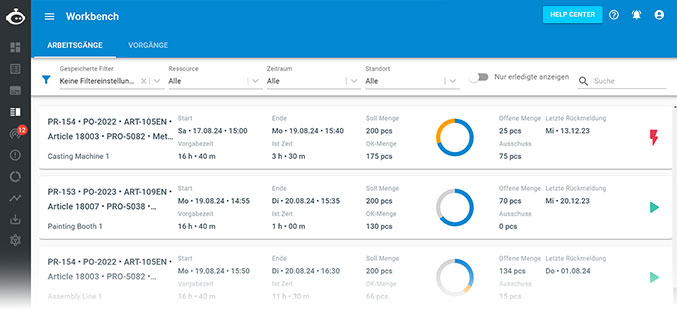 Alle Aufgaben auf einen Blick – digital, papierlos und sofort verfügbar. Mit der Workbench Klassik erhalten die Mitarbeiter in der Produktion eine Übersicht der anstehenden Aufgaben, filterbar nach Zeit und Mitarbeiter.