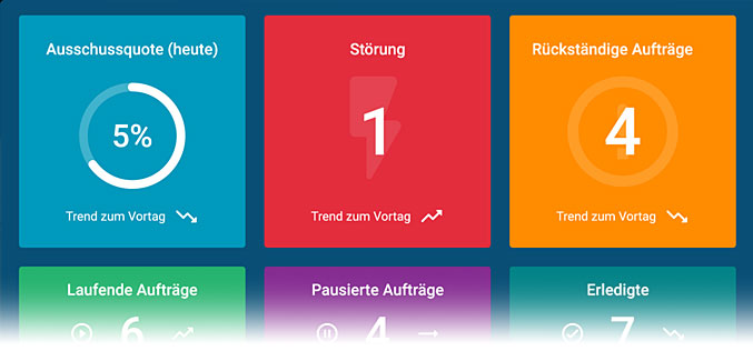 So verschafft sich jeder einen schnellen Überblick, steigert die Motivation und behält den Fortschritt im Blick – wie viele Arbeitsgänge sind erledigt und läuft die Produktion heute besser als gestern?